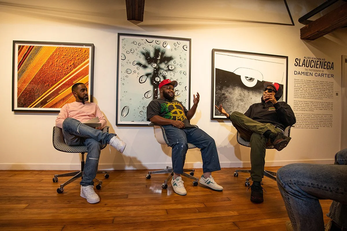Following the engaging discussion, guests had the privilege of experiencing "Also Known As SlauCienega”, The Photography of Damien Carter exhibit. Damien Carter himself provided a personal tour, offering deeper insights into his artistic vision and the stories behind his captivating photographs. The reception was made even more special with a selection of fine wines catered by Off Hand Wines, adding to the ambiance and enjoyment of the evening.
